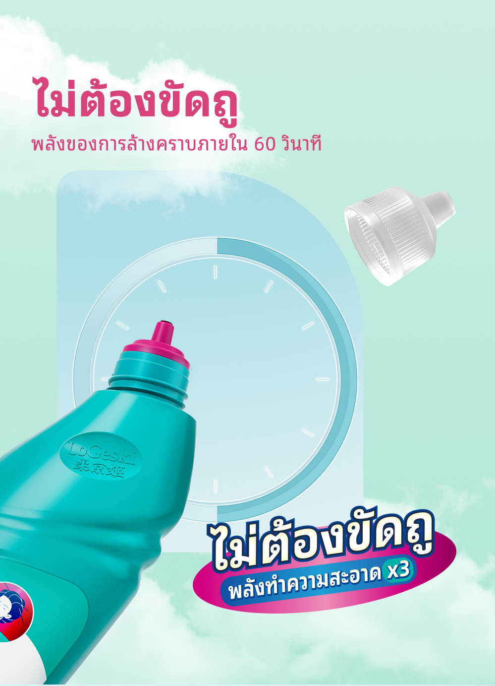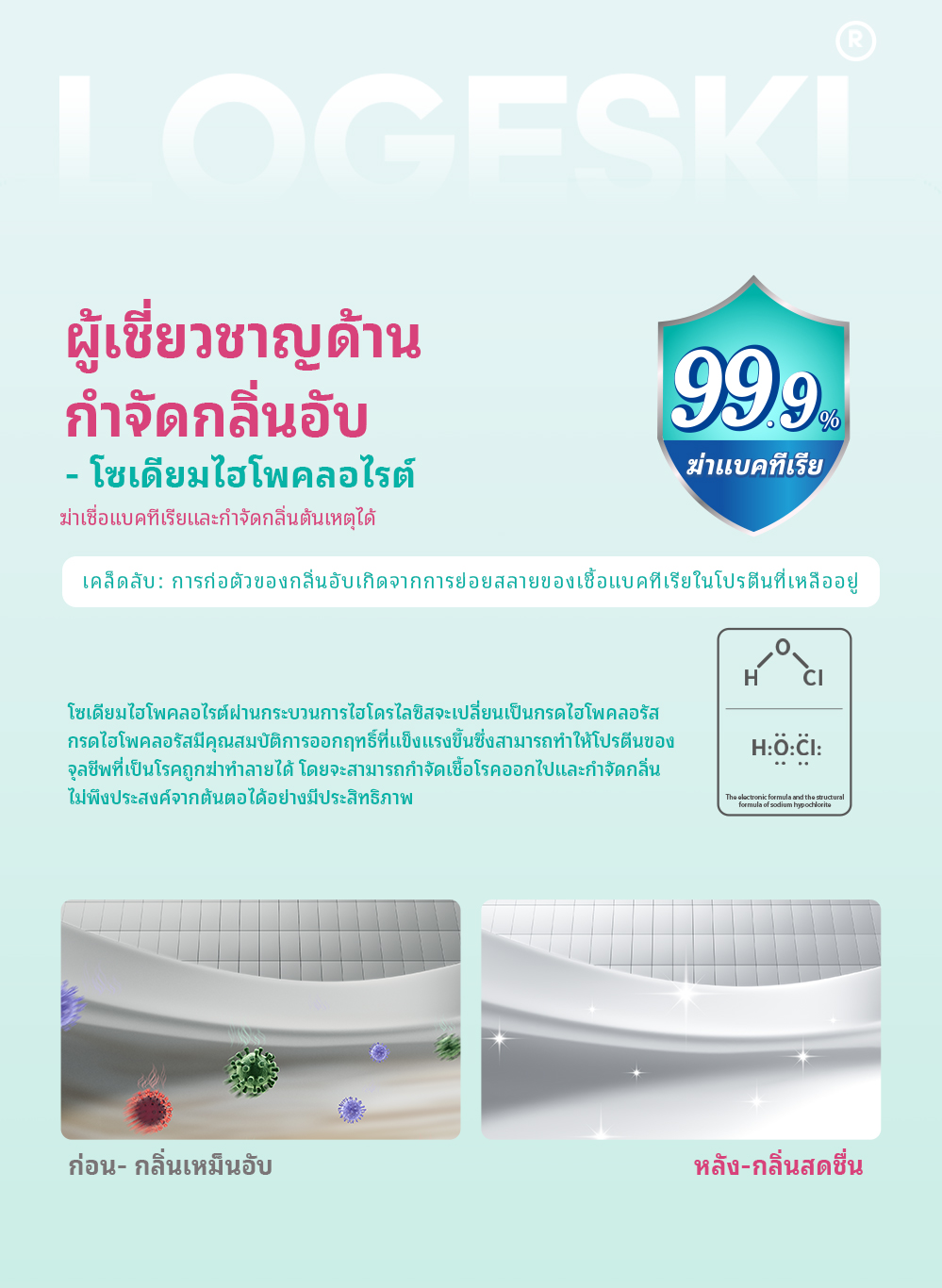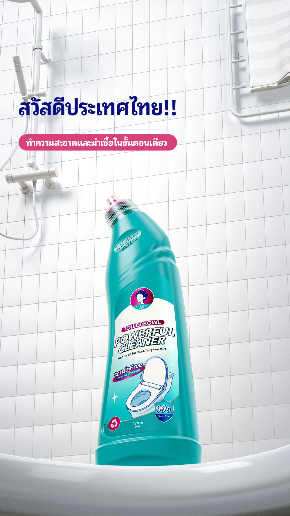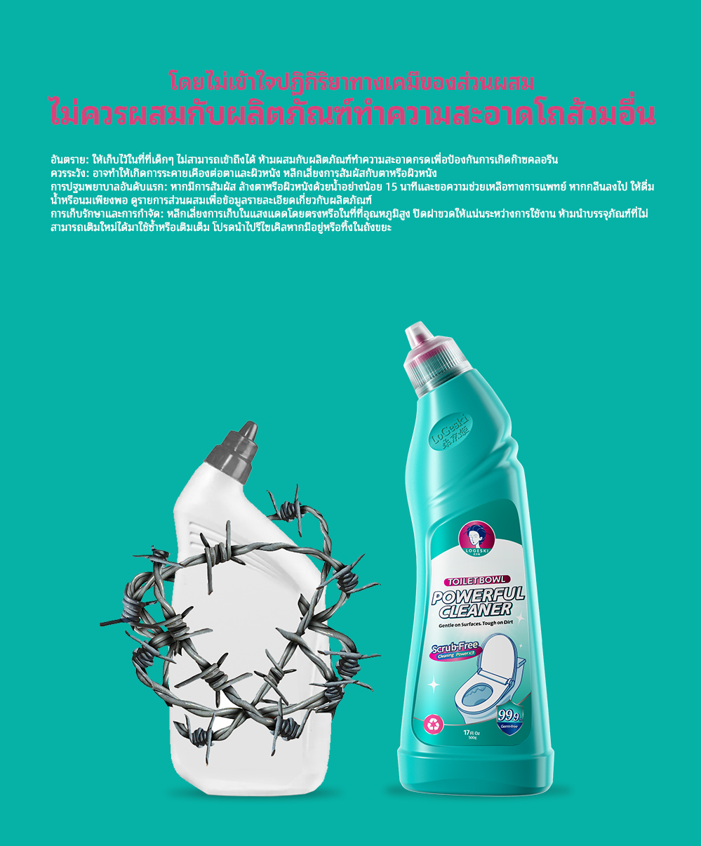LOGESKI น้ำยาล้างโถสุขภัณฑ์ ไม่ต้องขัด ขจัดคราบ ตะกรัน และกลิ่นได้อย่างหมดจด ฆ่าเชื้อ 99%